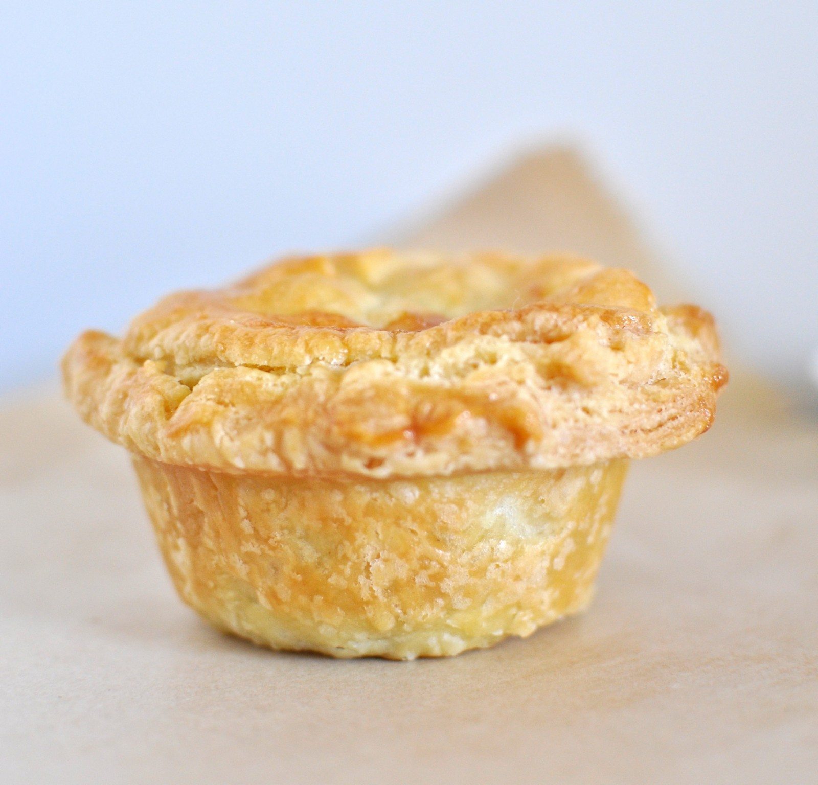 Bake the pies at 180C fan-forced for 25 minutes or until they are golden brown.